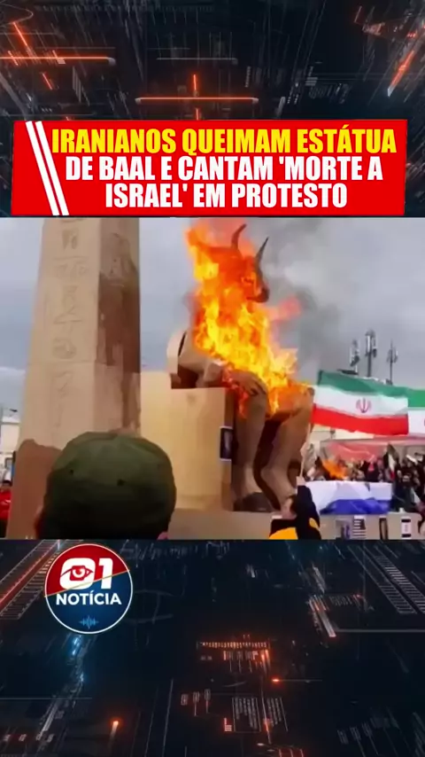 Tensão no oriente médio! 🚨 durante o aniversário da revolução no irã, manifestantes queimaram uma estátua de baal com a estrela de davi para atacar israel. o clima de guerra só aumenta. o que você acha? 👇 #Noticias #01noticia #mundo #ira #israel #guerra #politica