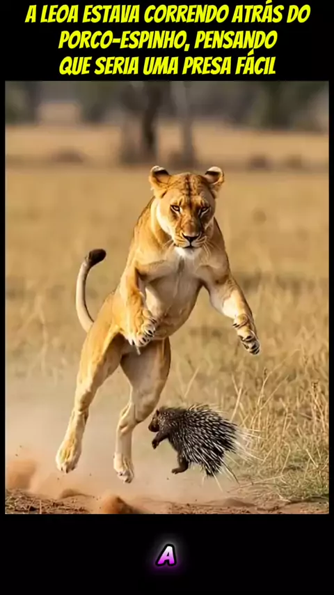 A leoa estava correndo atrás do porco-espinho, pensando que seria uma presa fácil. #maisviews #foryou #ia #viraliza #vidaanimal