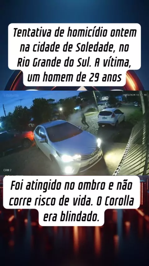 Tentativa de homicídio ontem na cidade de Soledade, no Rio Grande do Sul. A vítima, um homem de 29 anos, foi atingido no ombro e não corre risco de vida. O Corolla era blindado.