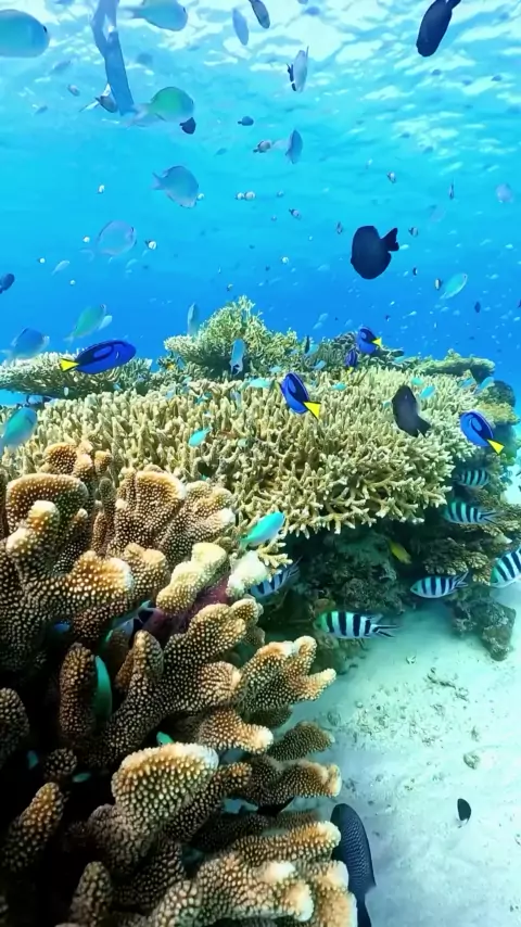 Oceano vibrante revela sua beleza com águas cristalinas, cardumes de peixes coloridos e corais deslumbrantes. A flora marinha balança suavemente, enquanto criaturas exóticas exploram o fundo do mar, criando um espetáculo de vida e cores.