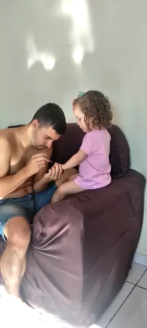 papai pintando a unha da lolo