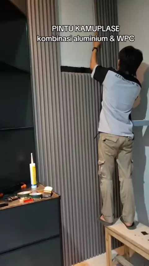 pintu kamuplase WPC kombinasi aluminium. project ibu Rindu. tambun bekasi. #renovasirumah #aluminiumbekasi #aluminium #pintukamuflase