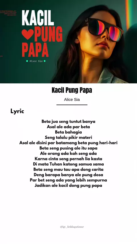 Lirik Lagu Timur Kacil Pung Papa. Alice Sia. # #lgtliriklagutimur #musiktrending #laguambon #kacilpungpapa