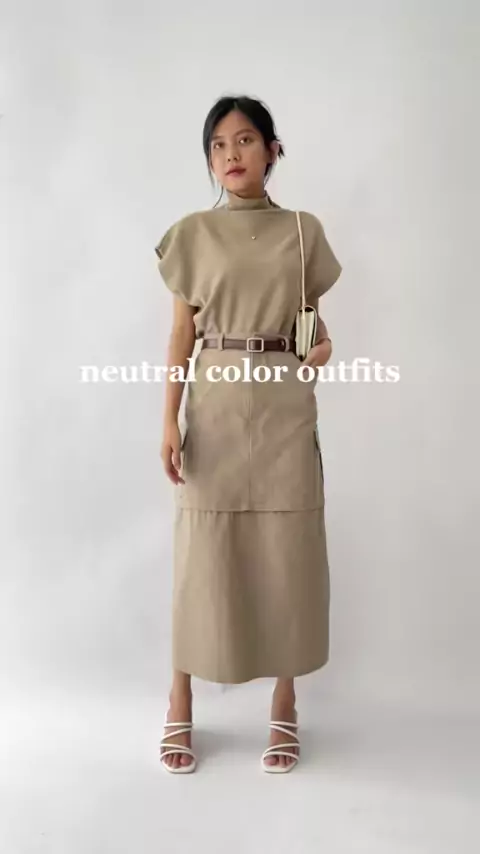 Neutral outfit 1/2🤎✨ #neutraloutfit #thisorthat #neutralaesthetic #aestheticoutfit #cargoskirt #rokcargo #knittop #kemejarayon #loosepants #kulothighwaist