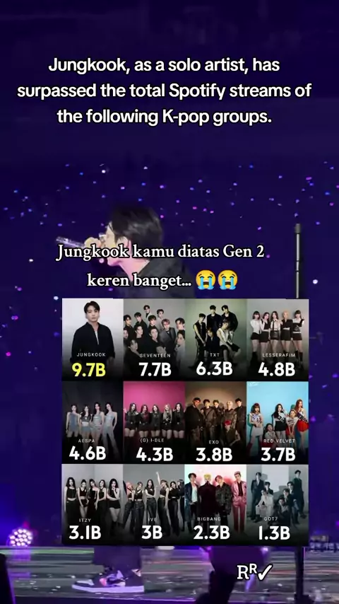 Keren banget Jungkook π₯β οΈπ€―π€£πππ Jungkook, as a solo artist, has surpassed the total Spotify streams of the following K-pop groups. #kpoo_unity_bd #btsarmy #jungkook #btsinfo #ot7bts
