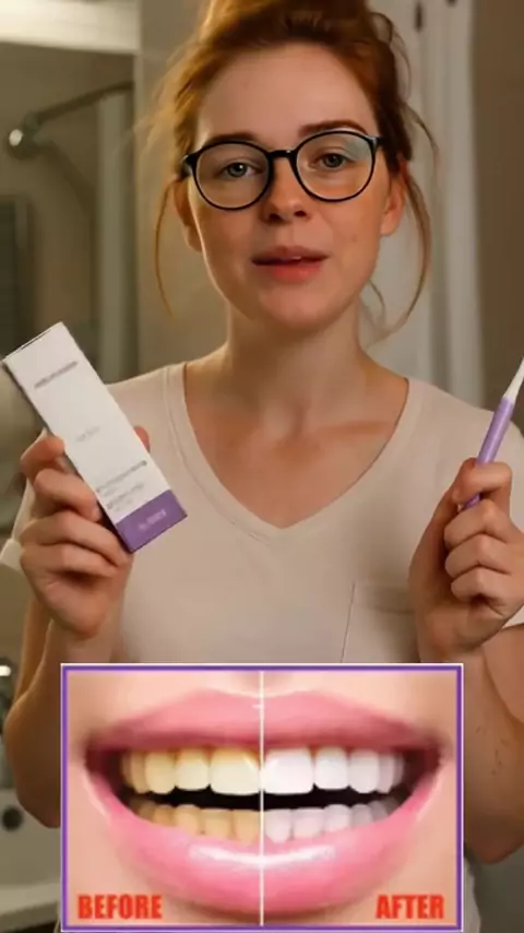 A pasta branqueadora roxa V34 remove manchas nos dentes, reduz dentes e gengivas amareladas, cuida de dentes