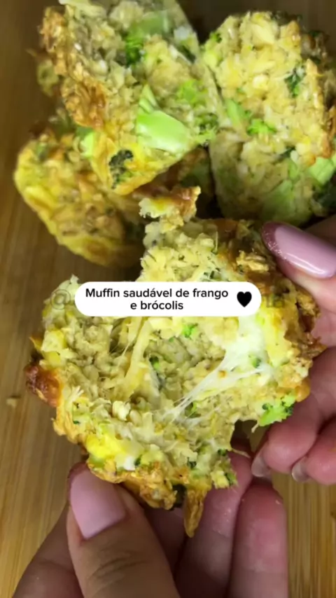 Muffin saudável e proteico de frango com brócolis🥦 já salva pra variar na sua dietinha🤤🥵 #Receita #fit #muffin #receitafit