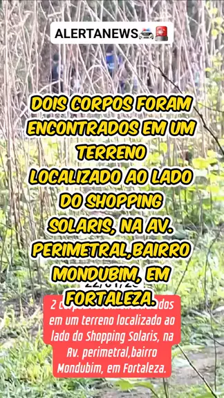 2 corpos foram encontrados em um terreno localizado ao lado do Shopping Solaris, na Av. perimetral,bairro Mondubim, em Fortaleza.Polícia Militar foi acionada ao local para realizar os primeiros levantamentos. As autoridades ainda não divulgaram informações sobre a identidade das vítimas ou as possíveis circunstâncias do ocorrido. #flagrante #homicídio #homicídio #noticiasdeultimahora #últimasnotícias