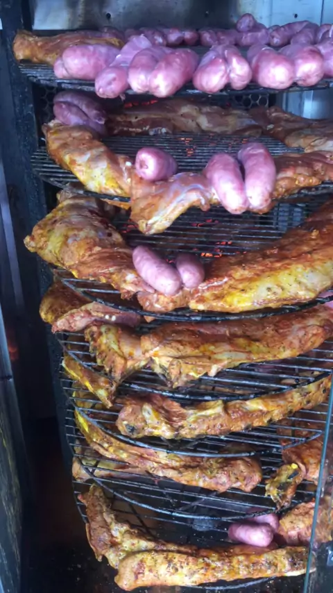 Costelinha suína na máquina a brasa