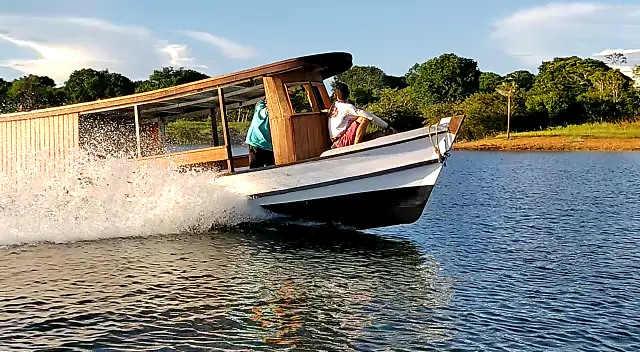 Barco regional com motor Mercedes OM 352A 180hp reversor 2x1 velocidade 26mph. Teste em Terra Santa-Pará. # lmotorbruto #alfamarinemotores #motormarítimo #motormercedes
