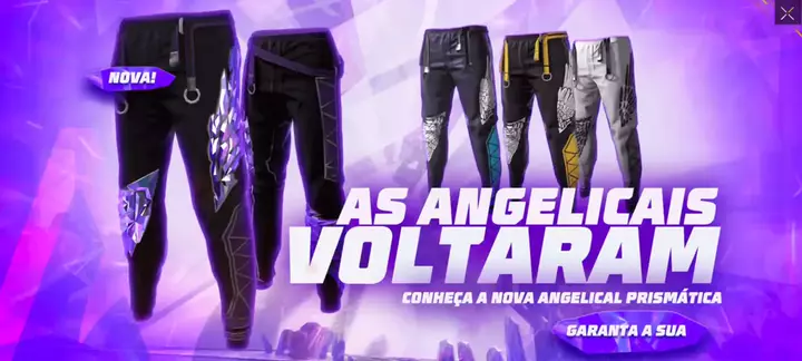 free fire Token royale Nova calça Anjo roxa