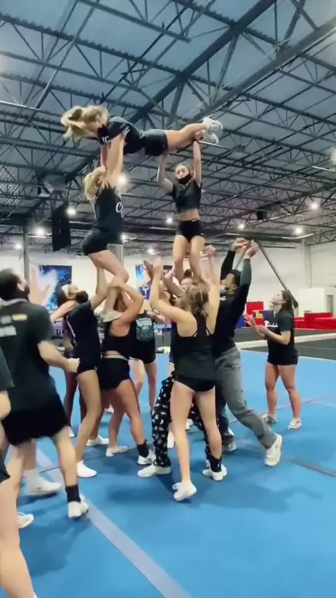“history in the making”😎 #kamikaze #ice #cheer #cheerstunts #pyramid #cheerleading #cheerleaders #college #allstar # # #stunting #stunts