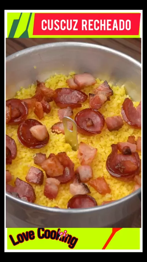 Cuscuz recheado, vc pode colocar o recheio que quiser. vcs gostam de cuscuz? #amocuscuz #cuscuz #calabresa #queijo #bacon