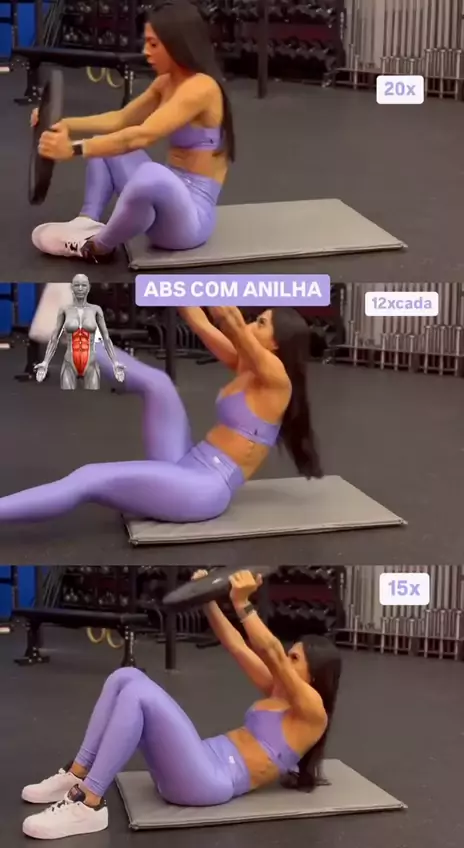ABDÔMEN COM ANILHA!! Um série com 3 exercícios de abdômen para fortalecer e minimizar a flacidez utilizando uma anilha! Lembrando que sua alimentação tem um papel fundamental para um resultado mais efetivo → Na sequência Abdominal completo anilhas nos pés 3x20 canivete alternado com anilha 3x12 cada Reto abdominal curtinho 3x15 Repete a sequência 3x #esporte #esporteviral #kwaisports #viraliza #gym