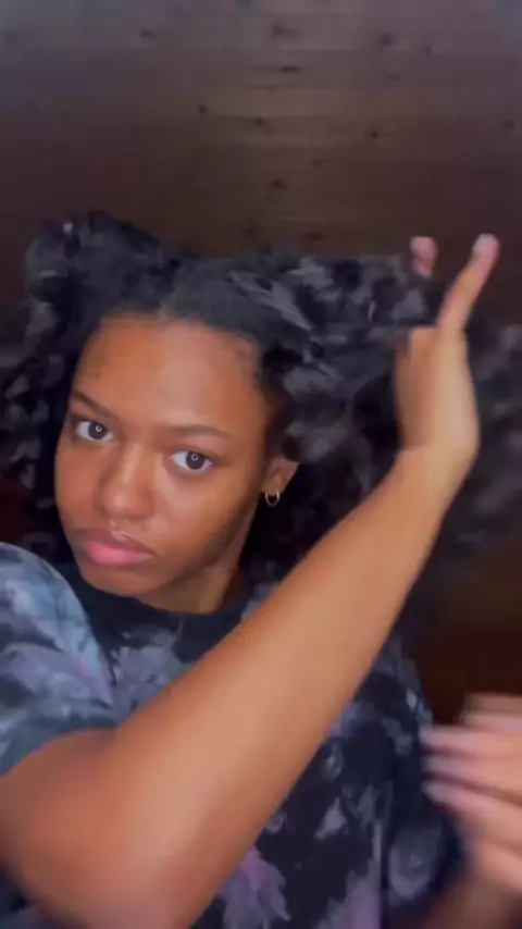 Cachos de meia com meias no cabelo soprado! # sockcurls # heatlesscurls # hairtok # blowout # blackgirlhair
