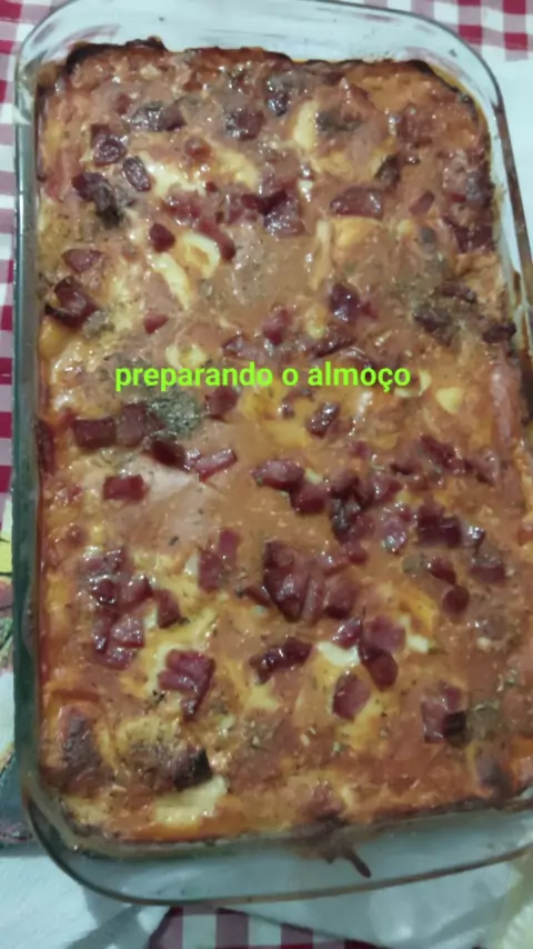 lasanha de macaxeira #macaxeira #musarela #presuto #queijoralado #bacon