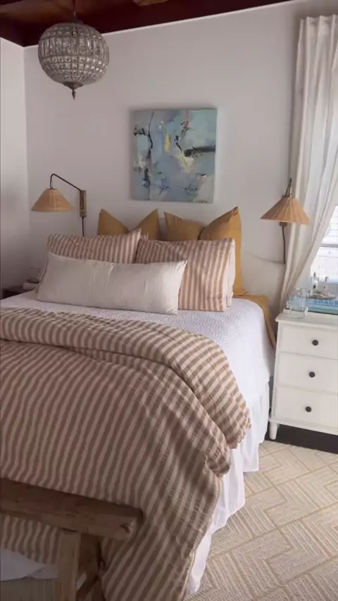 Manhãs de verão no meu pequeno quarto ✨ A luz nautral em um espaço faz toda a diferença! # morningvibes # interiordesign # bedroomcheck # bedroomdesign # homedecor # naturallight # housedesign # beachhouse # coastalcowgirl # coastalgrandmother # beddingsets # pigletinbed