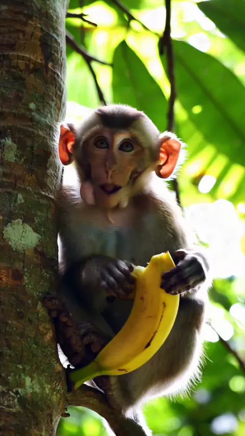 #monkey #bananatime #monkeyeats