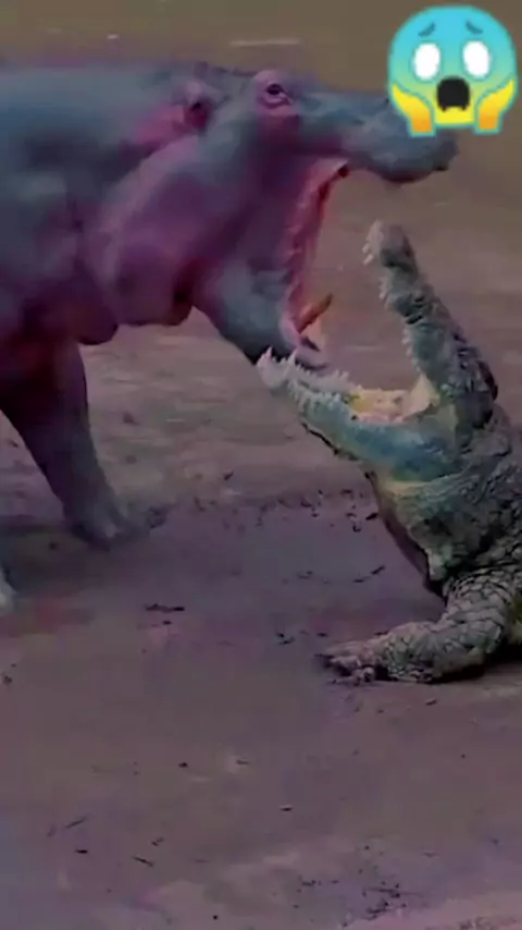 Mamãe hipopótamo protegendo seu filhote de ataque de crocodilo #88festivaldeofertas #eunomeudia #maisviews #hipopotamo #crocodilo