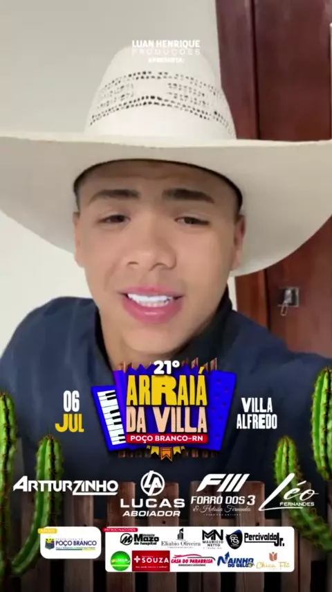 Tô com saudade do melhor e maior arraiá da Região Do Mato Grande, e é claro que dia 6 de Julho temos um encontro marcado no Arraiá da Villa, e o Lucas Aboiador já convida você a fazer parte desse mega evento. Então junte sua família e sua turma e vamos curtir muito forró com o Lucas Aboiador. *06 de Julho* - Poço Branco te espera para o melhor arraiá de todos os tempos. 💃🏽💥🎉 #arraiadavilla #arraiadavilla2024 #muitoforro #gentebonita #tradicaoetradicao