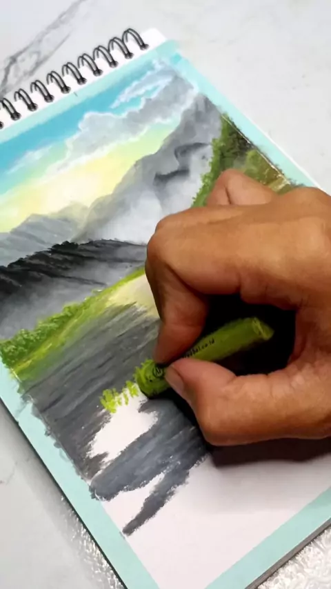 menggambar pemandangan alam dengan crayon #melukis #howtodraw #paintingprocess #oilpastel #karyaseniku