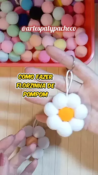 Chaveiro Florzinha de Pompom Materiais: - Mini Pompom de 2 cm (20 mm) - Fio de cetim - Argola de chaveiro - Cola de Silicone #artesanato #pompom #chaveiro #Organização #Recomendación