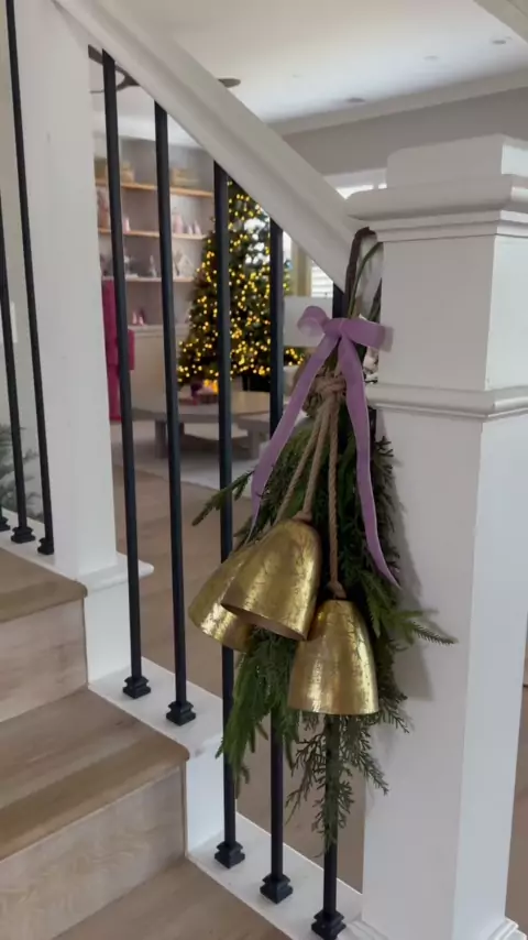Staircase Styling without breaking the bank! A clean a simple way to add Christmas magic to your banister. ππ#christmasstyling#christmashomedecor#christmashack#christmasstaircase#pinkchristmas#homehacks