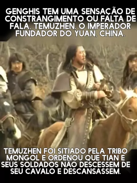 "Genghis tem uma sensação de constrangimento ou falta de fala. Temuzhen "episódio 11: Temuzhen é sitiado por tribos mongóis, ordenando que Tian e soldados não desçam de seu cavalo e descansem