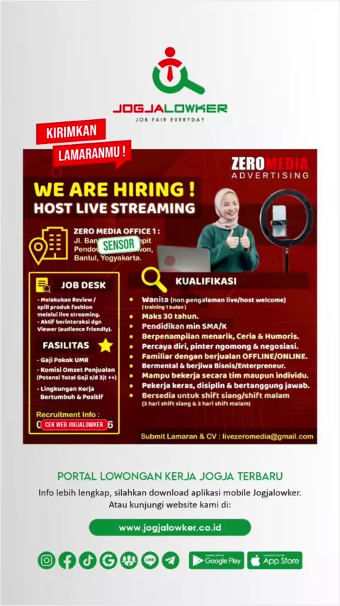 Info loker Jogja terbaru hari ini untuk posisi: HOST LIVE STREAMING Share & ajak temenmu untuk bekerja π Download aplikasi mobile Jogjalowker di Play Store / App Store untuk akses lebih mudah dan cepat (link di bio) π #jogjalowker #loker #lowongankerjajogja #lokerjogja #lokersleman #lokerbantul #lokeryogyakarta #lokergunungkidul #lokerkulonprogo #lokerjogjaterbaru #jobfaireveryday