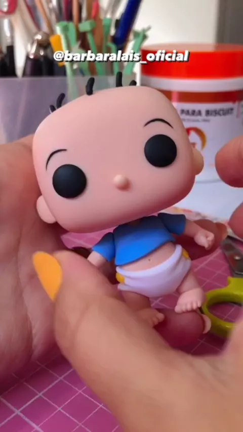 Arte em Biscuit 🩵 feito a mão 🤚🏻 Você apertaria essa fofura ? 🥹🩵 #TáChegandoAHora #biscuit #funkopop #artesanato #Kawai