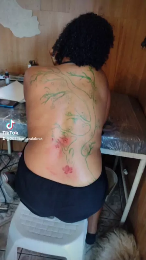 Morena tatuada com cara de Santinha #tatuagensns #tatuajem #Tatuagem013