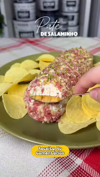 PATÊ DE SALAMINHO INGREDIENTES • 100 g de salaminho • 130 g de muçarela ou parmesão • 300 g de cream cheese • Cheiro-verde a gosto • 30 g de azeitona (opcional) • Caldo de 1 limão Decoração • 50 g de amêndoas ou castanhas de sua preferência • 100 g de salaminho • Raspas de 1 limão Sirva com torradinhas, batata ou pão sírio. #receitas #receita #pate #receitadenatal #entradinha