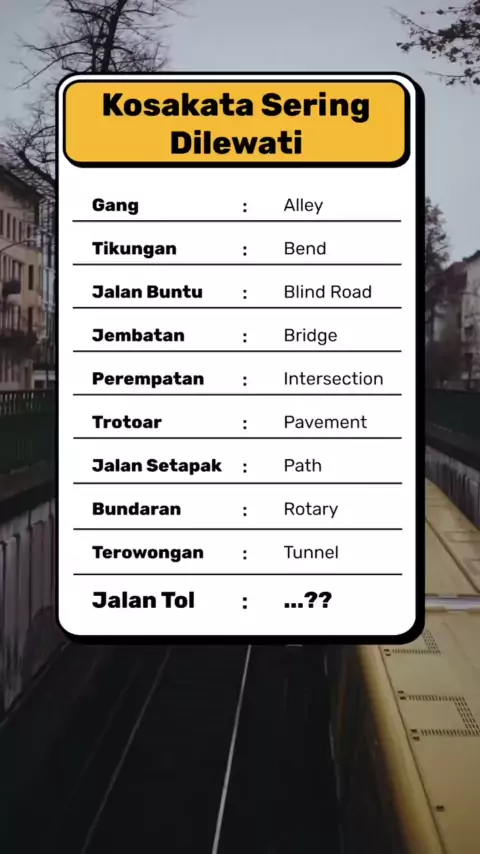 Jalan yg sering kalian lewatin jalan apa nih? #JoydayBerlapisSerunya #vocabulary #englishwords #kosakatabahasainggris #jalanjalan