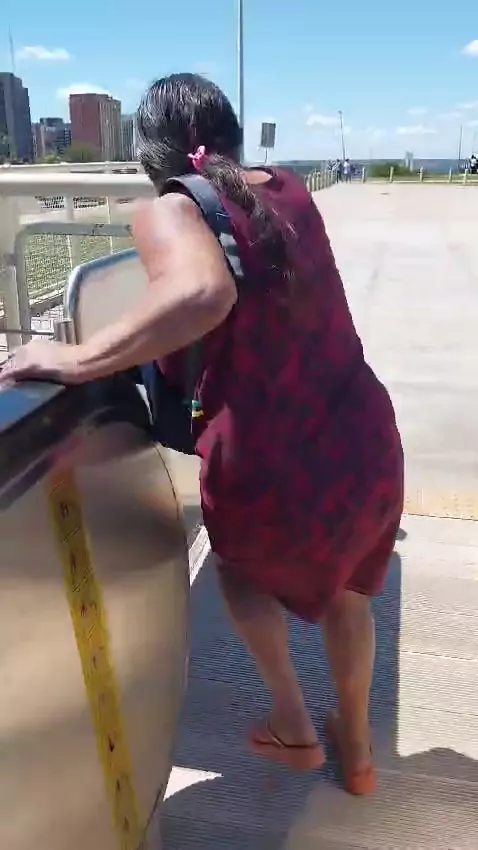 Kayapo do Pará conhecendo a escada rolante. Sempre tem primeira vez kk #Brasilia #KwaiBrasil #criador