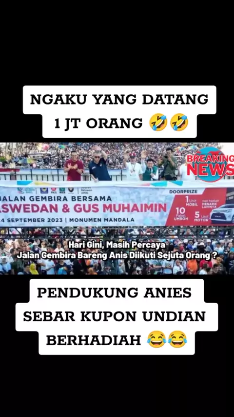 Anies ngaku yang datang 1 juta orang.? ternyata ada hadiahnya. #berita #aniesgagaltotal #aniesbaswedan #anies #relawananiesbaswedan #aniesgagalpimpinjakarta #aniesgagal #koalisiperubahan #