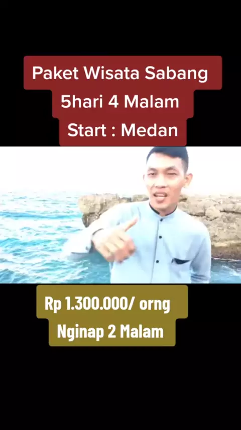 Rp 1.300.000 / orng. Start dari Medan . 5hari 4Malam Fasilitas 1. Tranpot Mobil Full AC 2. Penginapan 2 Malam 3. Tiket Kapal PP 4. 15 Lokasi Wisata 5. Snorkling 6. Guide 7. Parkir 8. Pengalaman Paling Berharga#travelwisatasumut#besiberanitravel##medan#medanviral#beritamedan#exploresabang#rentalmobilmedan#travelwisata#km0indonesia#pakethoneymoonsabang#km0indonesia#km0indonesia#snorklingsabang#pulausabang
