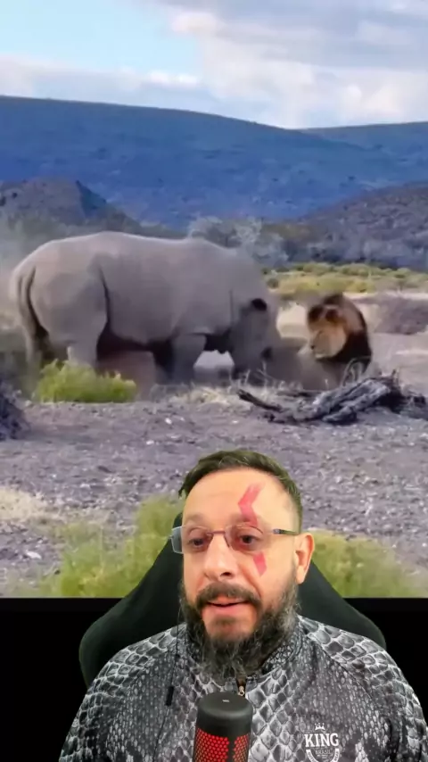 Leão quase vira espeto de chifre de rinoceronte #animais #leao #rinoceronte #comportamentoanimal #flagranteanimal