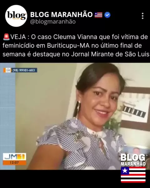 đšVEJA: O caso de feminicĂdio em Buriticupu-MA Ă© destaque no Jornal Mirante de SĂŁo Luis. Siga âȘïž @blogmaranhao para + notĂcias! (Reprodução: @tvmirante / Instagram / Internet) ⥠ă