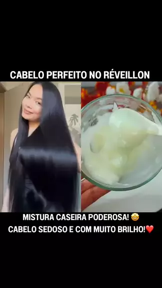 ✨Cabelos de salão em casa!✨ Hidratação caseira poderosa, reduz frizz, dá brilho espelhado e deixa os fios macios. Receita fácil, barata e com efeito incrível para arrasar no Réveillon!😍✨👏🏻. #cabelo #cabelolindo #hidratacaocapilar #cabelobrilhoso #Receita