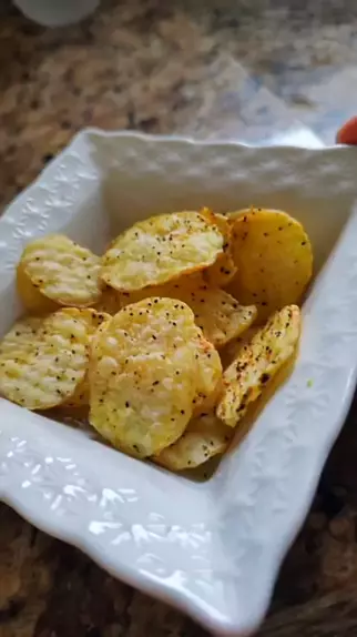 A melhor batata tipo Ruffles que você vai ver! Sério, fica incrível! No vídeo falei 4 min mas são 5 ok? Só faz!! 🥔🥔 #batata #saudavel #receitasaudavel #rufflescaseiro #microondas