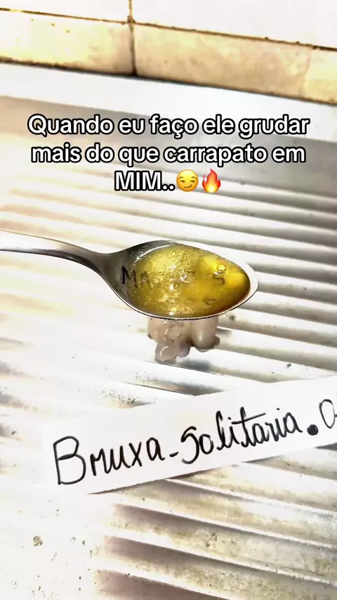 ELE VAI FICAR UM GRUDE EM VOCÊ! Pegue uma colher e escreva o nome da pessoa amada, coloque um pouco de açúcar nessa colher, e esquente a colher pode ser em uma vela, ou em fogo normal, quando o açúcar começa a derreter, chame pelo o nome da pessoa amada e repita essas palavras: “Eu quero eu posso e consigo, FULANO no meu pé rastejando implorando o meu amor tendo olhos só para mim que ele venha desesperado que assim seja que assim se faça!”