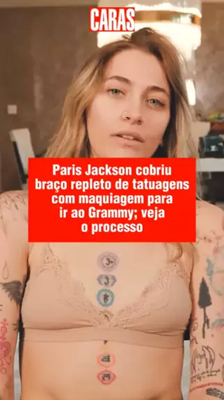 ANTES X DEPOIS | Filha de #MichaelJackson, Paris Jackson não cobriu só uma, mas aproximadamente 80 tatuagens no corpo com maquiagem para ir ao Grammy. 😱 Nas redes sociais, a artista compartilhou com os fãs todo o processo e sua reação ao ver o resultado. Reprodução/ Instagram #parisjackson #caras #grammys