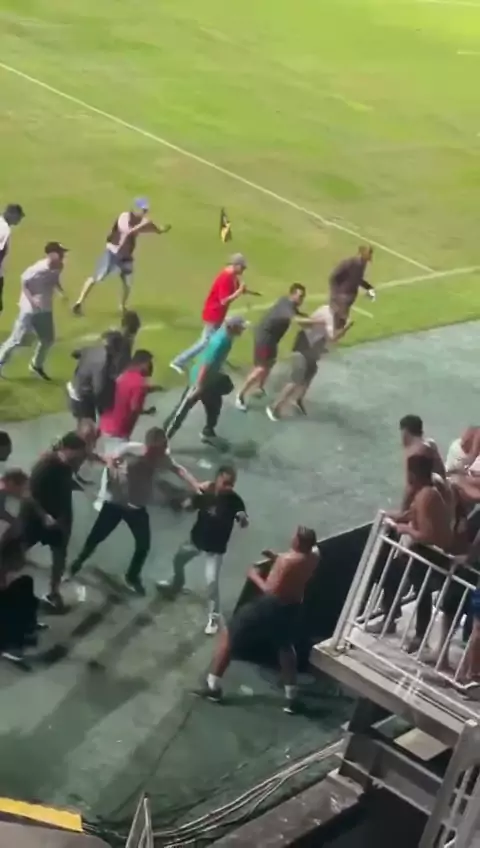 Briga no intervalo de jogo ontem no campeonato Catarinense entre as torcidas do Brusque x Avaí . #brigas #torcidas #campeonato