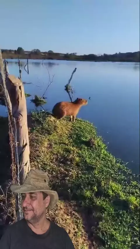 Chegou perto da capivara pra ver a reação