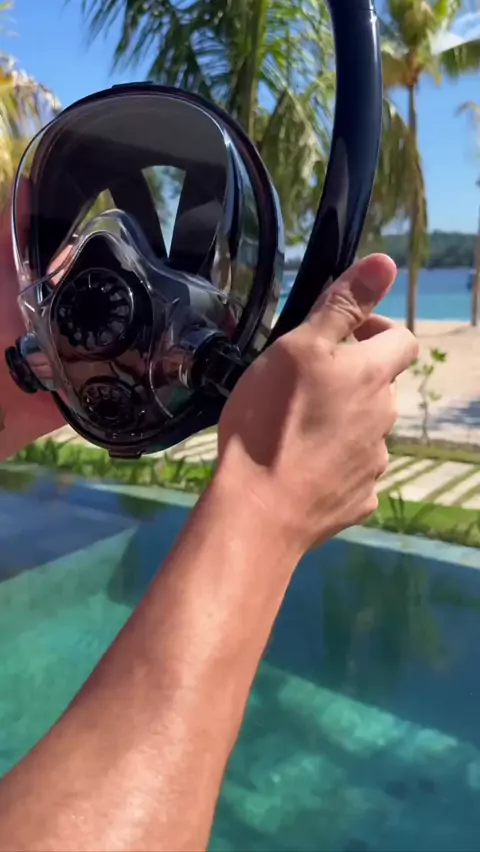 "Explore o fundo do mar com mais liberdade! Essa máscara de mergulho com oxigênio é perfeita para aventuras subaquáticas. Siga-nos para mais novidades! @achadinhosdacarabondo #Achadinhos #Mergulho #Aventura #Exploração #Tecnologia"