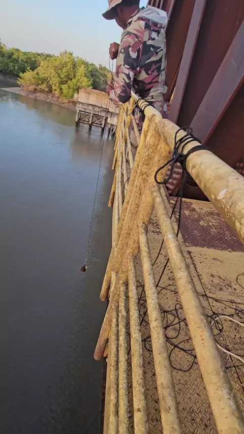 pescando em cima de uma ponte ferroviária