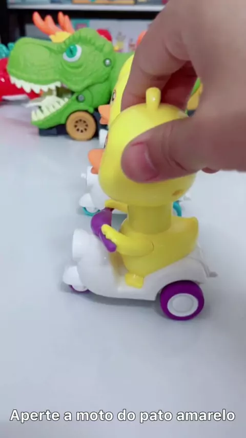 Pressione o pequeno brinquedo do carro da motocicleta do pato amarelo.