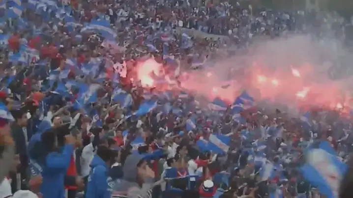 torcida do Nacional do Uruguai a plenos pulmões mesmo com o time perdendo o clássico contra o Penarol de 5x0 .