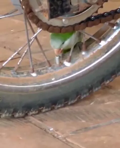 maritaca murchando o pneu da moto π±π #piriquito #maritaca