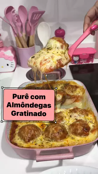 Essa combinação fica um DÊsaforo 🤤 . Purê de batatas com almôndegas gratinado com muito queijo 😚🤌